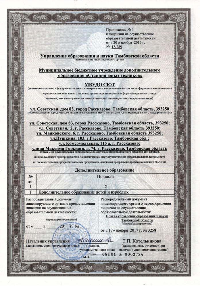г) Лицензия на осуществление образовательной деятельности. Приложение к лицензии