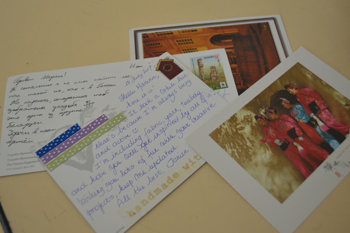 Вместе с лоскутками участники прислали туристические открытки с рассказом о главных достопримечательностях и особенностях своей страны. Девочки с увлечением изучали их и читали послания на иностранных языках.