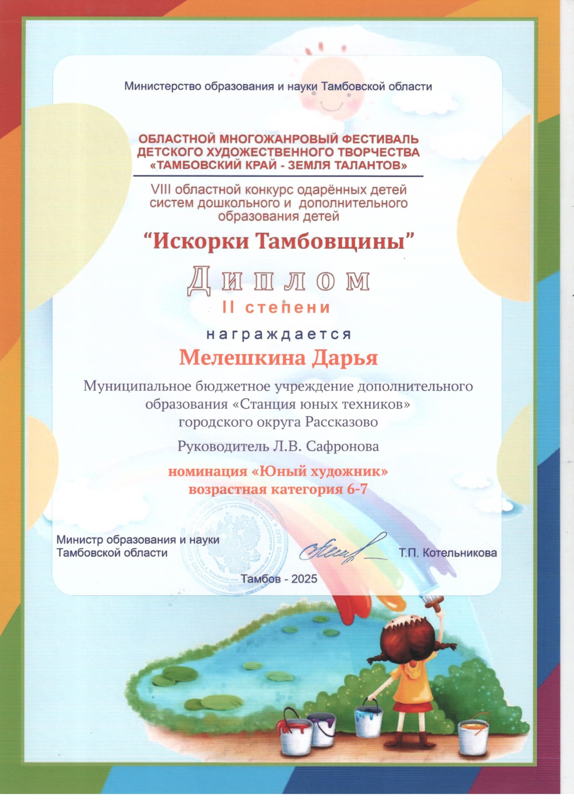 Финал VIII областного конкурса одарённых детей систем дошкольного и дополнительного образования детей «Искорки Тамбовщины» состоялся 10 апреля 2025 года в ТОГБОУ ДО «Центр развития творчества детей и юношества».